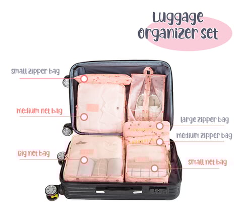 Our organizer set is specifically designed to fully utilize your luggage space while also fitting into standard luggage compliant suitcases.